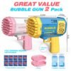 - BUBBLE MACHINE 2-PIECE SET: This bubble machine includes 2 pieces of bubble wands with extra 2 refills, and 10 bags of bubble concentrate. And 2 colors of bubble blower are provided to match any color